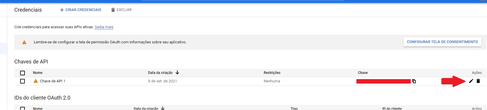 Feito isso, feche a janela de Popup de confirmação e em seguida clique para editar a chave recém criada: