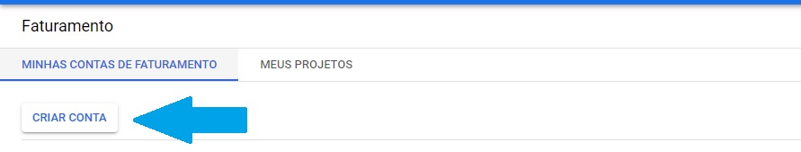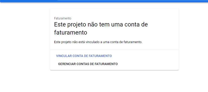 Se você nunca utilizou os produtos do Google Cloud, será necessário criar a conta de faturamento antes de vincula-la ao projeto recém criado. Para criar uma conta, clique em “Gerenciar contas de faturamento”.